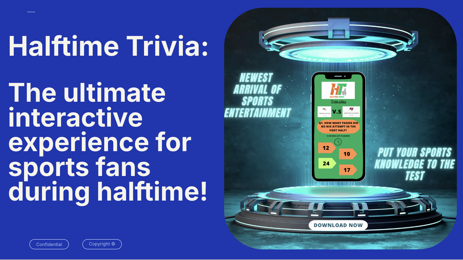 Halftime Trivia was a business venture concept I developed and led as CEO for my Sports Entrepreneurship course at the University of Colorado Boulder. Our team designed a live, interactive trivia experience for sports fans to play during game breaks, combining fan engagement with brand partnership opportunities. I oversaw team coordination, business planning, and pitch development, helping guide our concept from ideation to final presentation. This project strengthened my leadership and communication skills while deepening my understanding of how creativity and strategy come together to enhance fan engagement and brand connection in the sports industry.